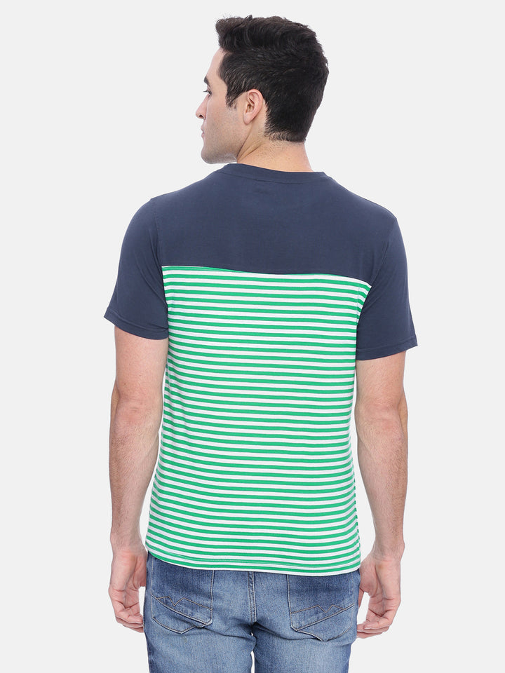 Men's Green and Navy Striped Crew Neck T-Shirt