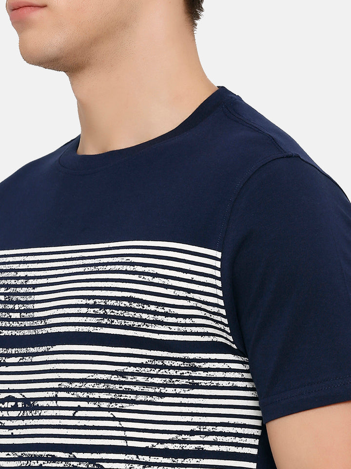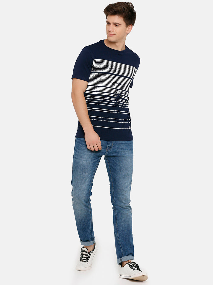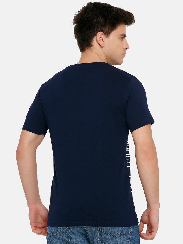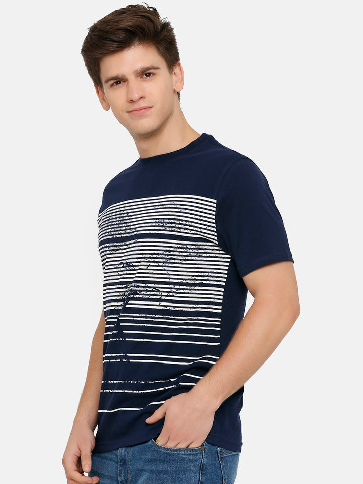 Men's Navy Printed Crew Neck T-Shirt